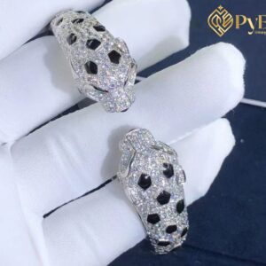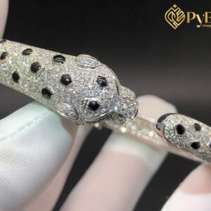 Cartier Double Panther Heads 18K White Gold Pave Diamonds Onyx 1:1 Custom Made Bracelet N6721017