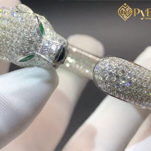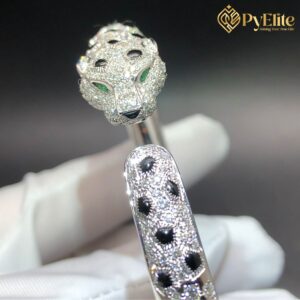 Custom Made 1:1 Cartier Panthere Full Pave Diamond Emeralds Onyx 18k White Gold Bracelet N6722417