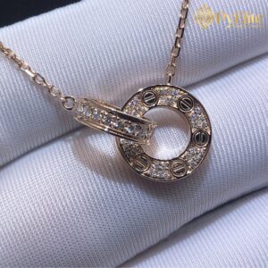 Cartier Love Interlocking 18K Rose Gold Pave Diamond Necklace 1:1 Custom Made