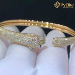 Cartier Panthère de Cartier Cuff Bracelet Custom Made Pure 18K Yellow Gold Half Pave Diamonds Small Model