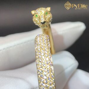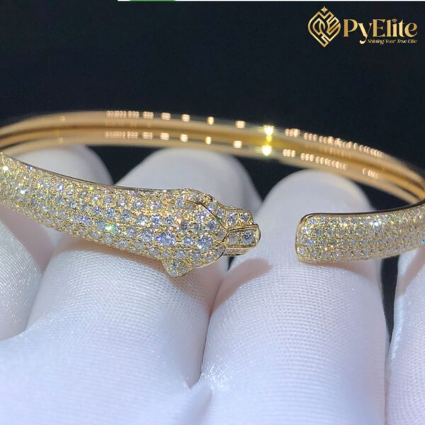 Video of the Cartier Panthère de Cartier Cuff Bracelet Custom Made Pure 18K Yellow Gold Half Pave Diamonds Small Model: