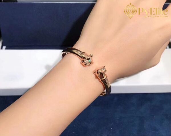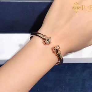 Cartier Panthere de Cartier Tsavorite Onyx Pure 18K Rose Gold Open Cuff Bracelet 1:1 Custom Made N6711617