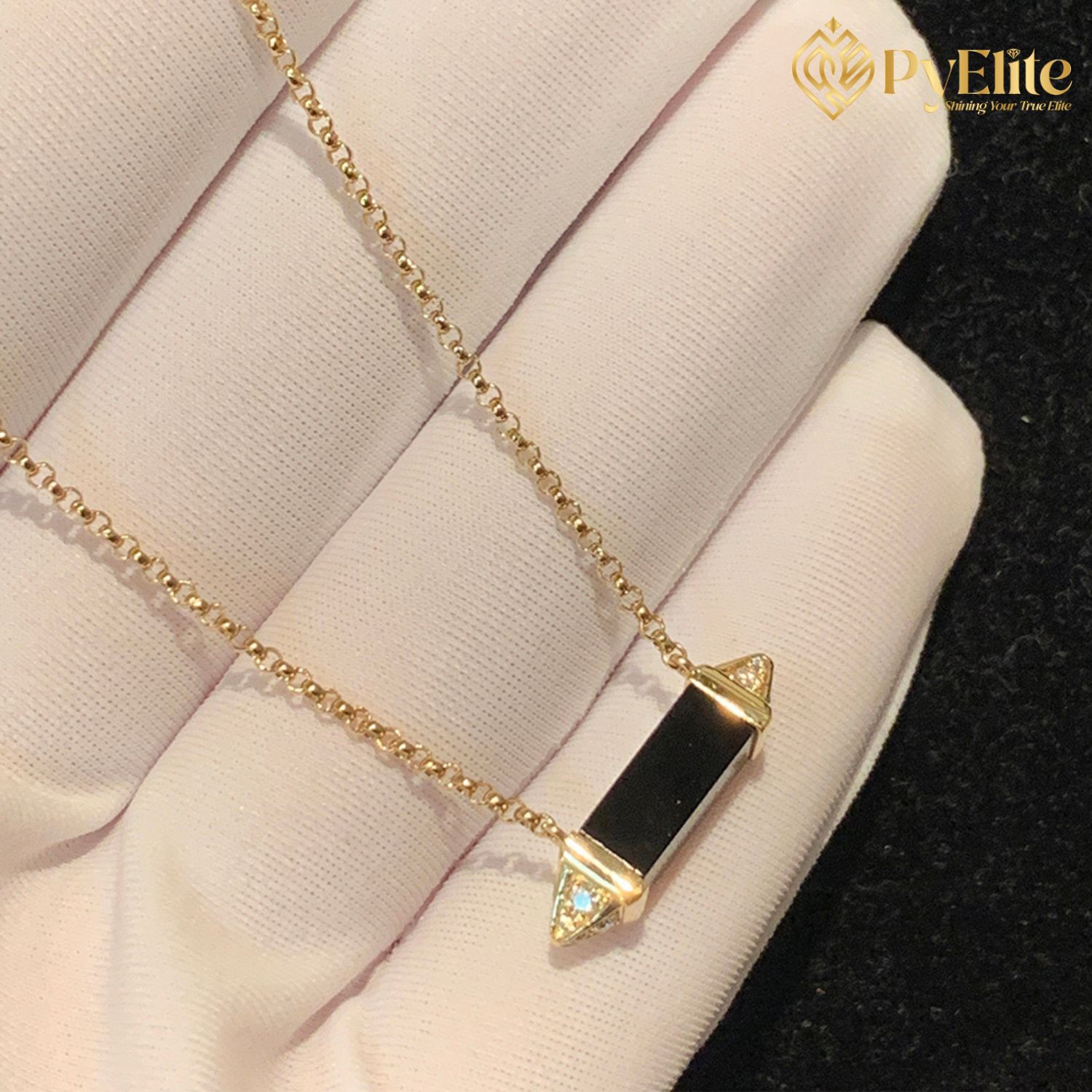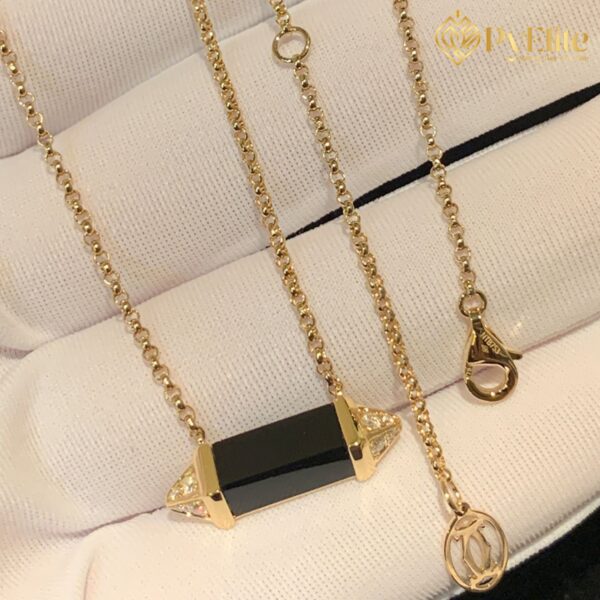 Custom Made 1:1 Cartier Les Berlingots de Cartier Onyx Diamond 18K Yellow Gold Necklace