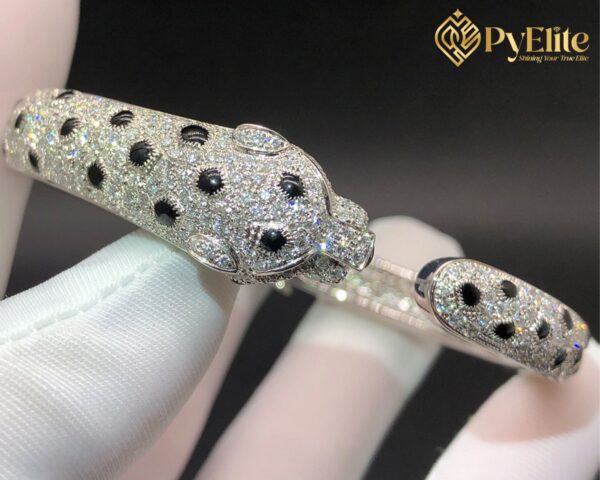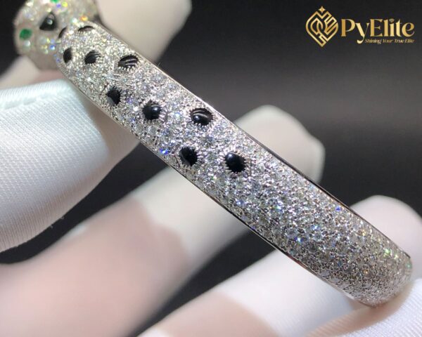 Custom Made 1:1 Cartier Panthere Full Pave Diamond Emeralds Onyx 18k White Gold Bracelet N6722417