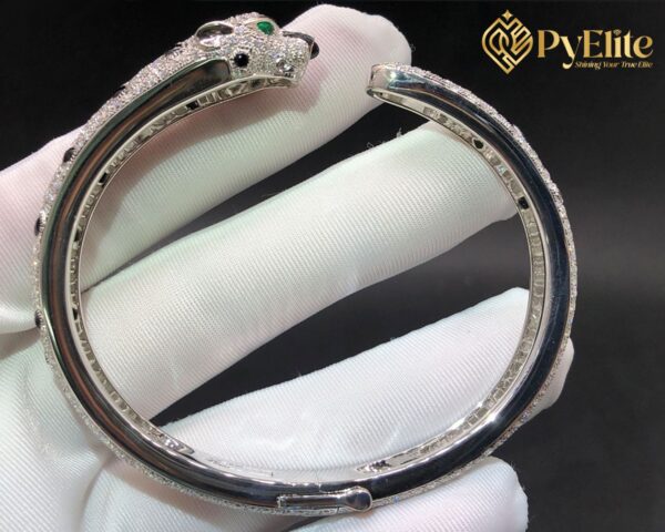 Video of the Custom Made 1:1 Cartier Panthere Full Pave Diamond Emeralds Onyx 18k White Gold Bracelet N6722417: