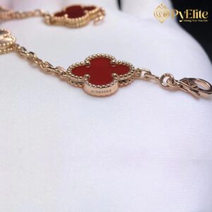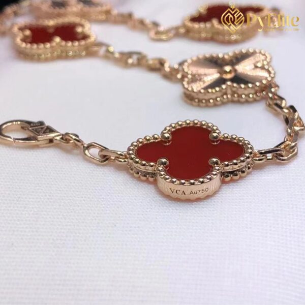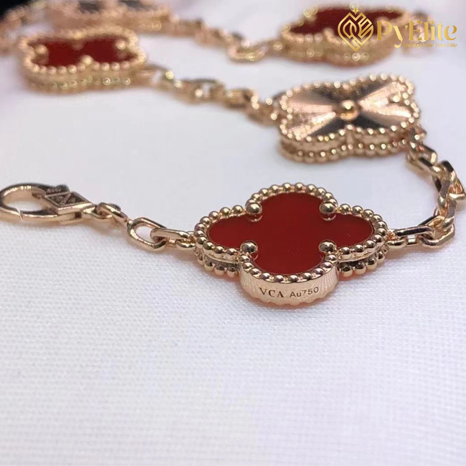Custom Made 1:1 Van Cleef & Arpels Carnelian and Guilloche 18K Rose Gold 5 Motifs Vintage Alhambra Bracelet
