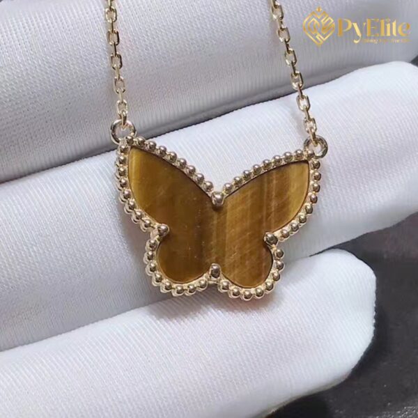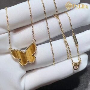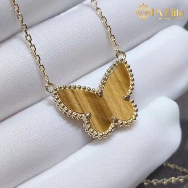 Custom Made 1:1 Van Cleef & Arpels Lucky Alhambra Butterfly Tiger Eye 18k Yellow Gold Pendant