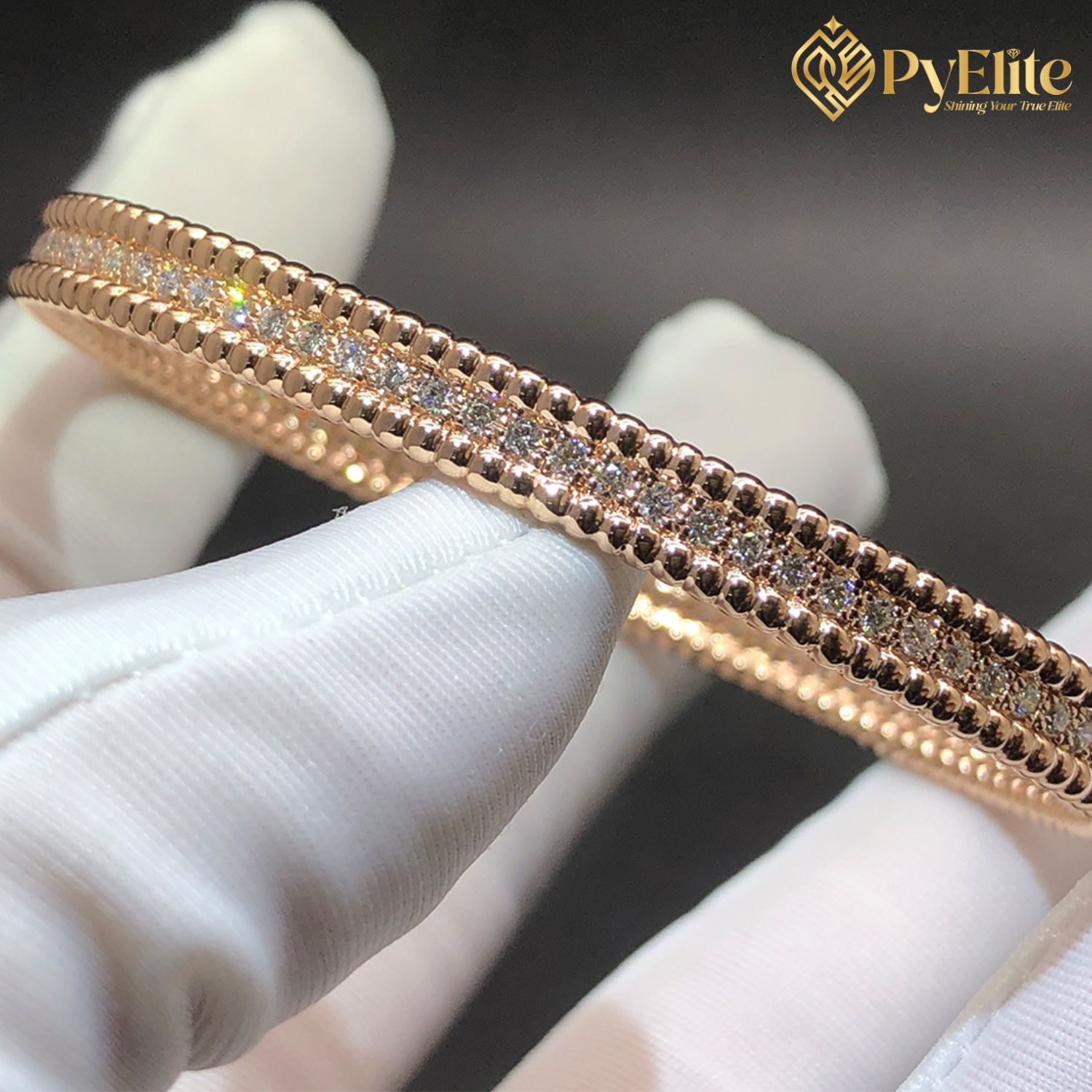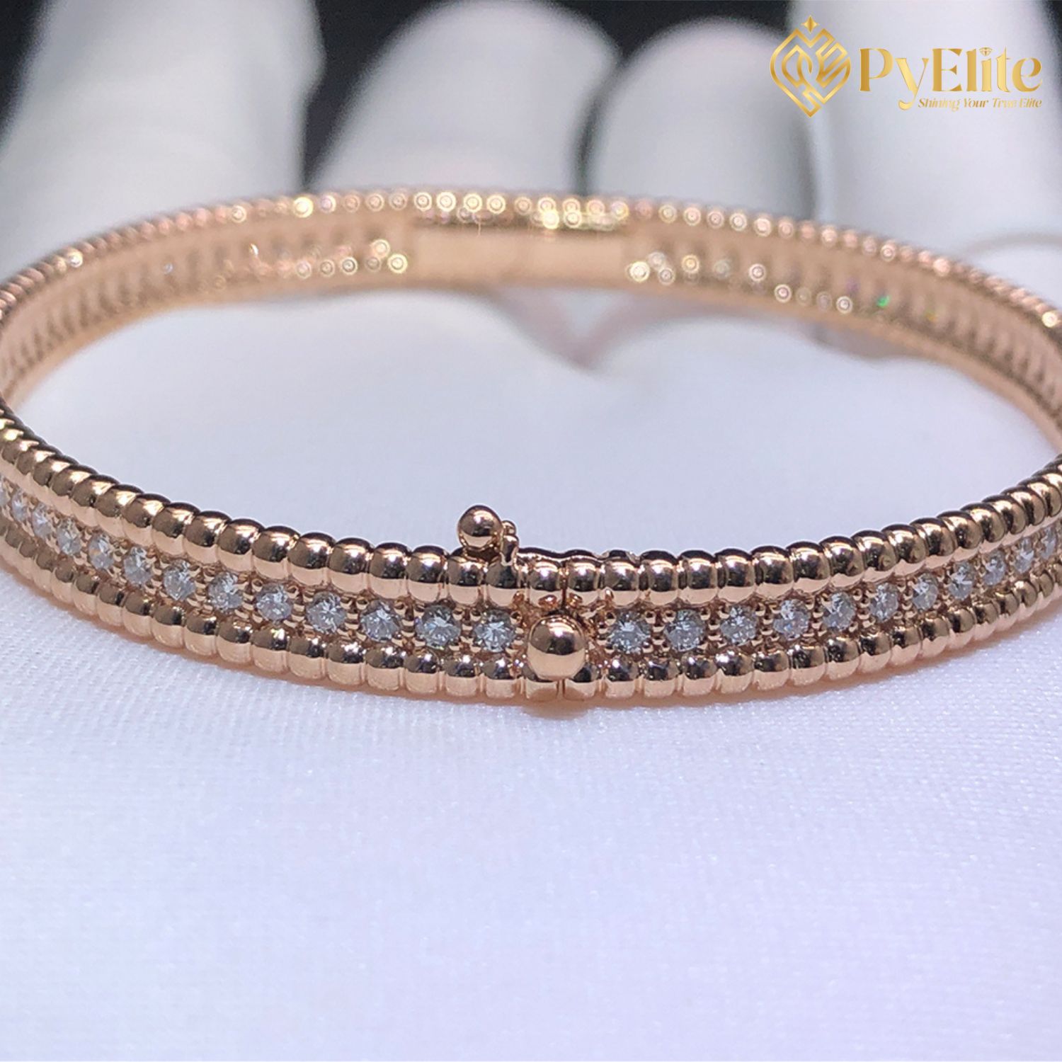 Video of the Custom Made 1:1 Van Cleef & Arpels Perlee Diamonds Bracelet 1 Row 18K Rose Gold Medium Model: