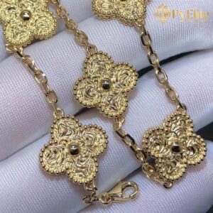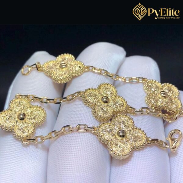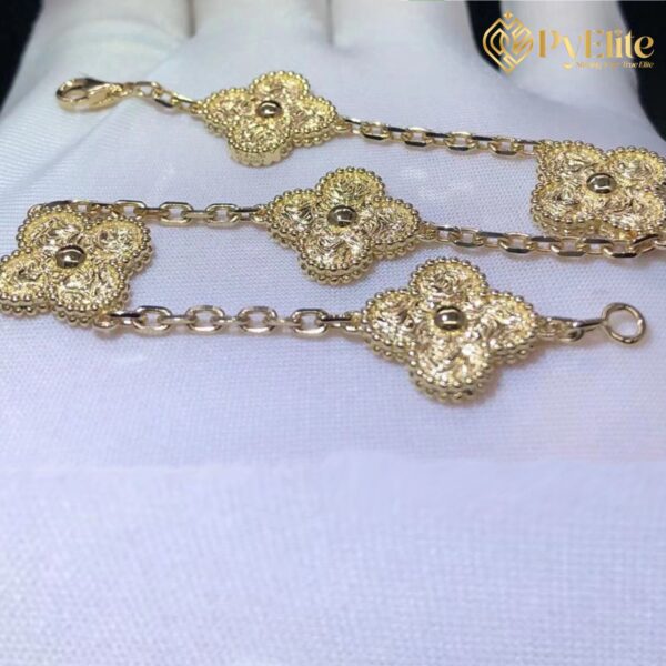 Custom Made Van Cleef & Arpels Vintage Alhambra 5 Motifs 18K Yellow Gold Bracelet