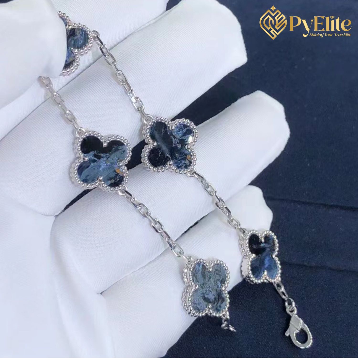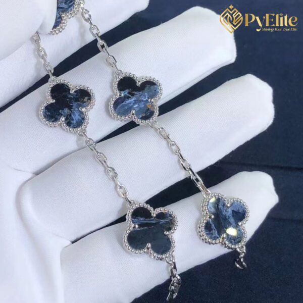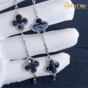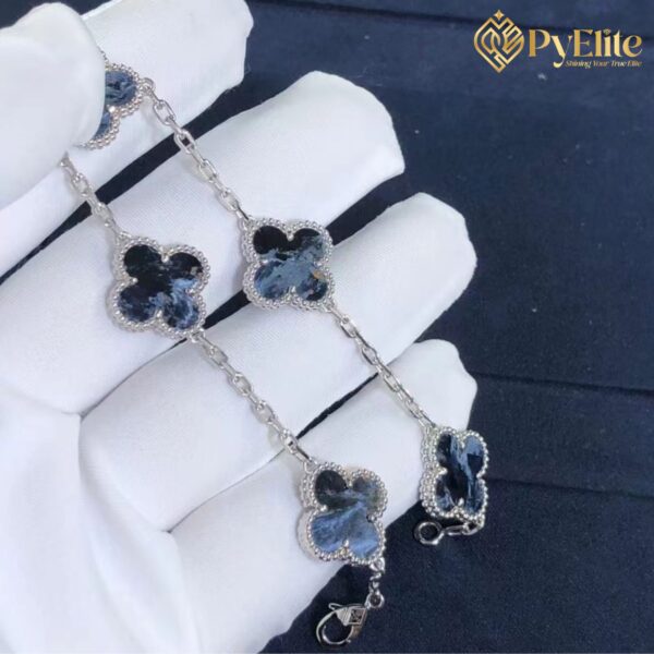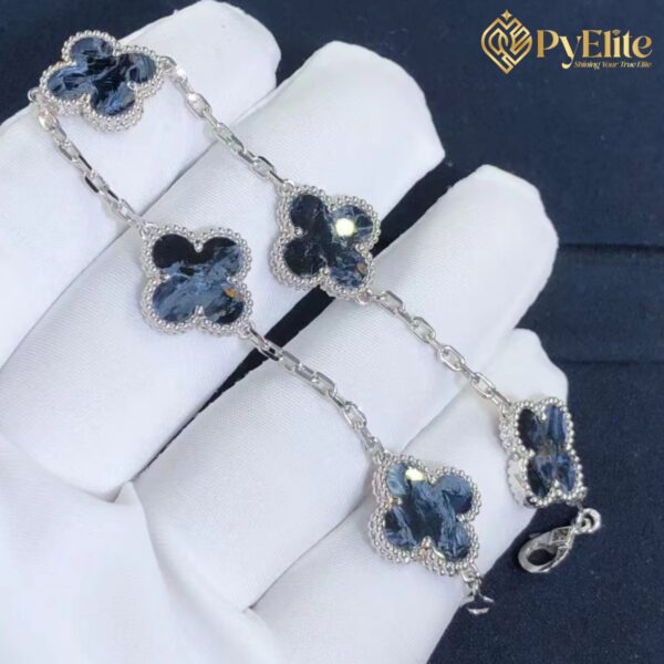 Van Cleef & Arpels Vintage Alhambra Blue Pietersite 5 Motif 18K White Gold 2023 Holiday Bracelet 1:1 Custom Made